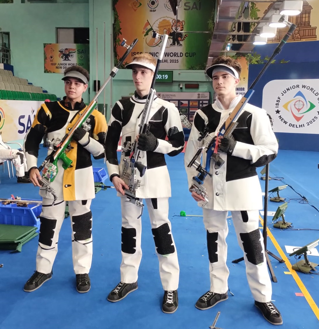 25 मीटर रैपिड फायर पिस्टल जूनियर पुरुष (स्टेज 1 क्वालिफिकेशन) में भारत ने दबदबा बनाए रखा। सूरज शर्मा ने 287-7x स्कोर कर एआईएन के अलेक्ज़ांद्र कोवालेव के साथ शीर्ष स्थान साझा किया। भारत के समीर गुलिया (286-9x), अभिनव चौधरी (284-8x), मुकेश नेलावली (283-10x) और जतिन (282-5x) तीसरे से छठे स्थान तक रहे। स्टेज 2 के बाद प्रत्येक देश से केवल तीन खिलाड़ी ही फाइनल में जगह बना पाएंगे, जिससे प्रतियोगिता और कड़ी हो गई है।