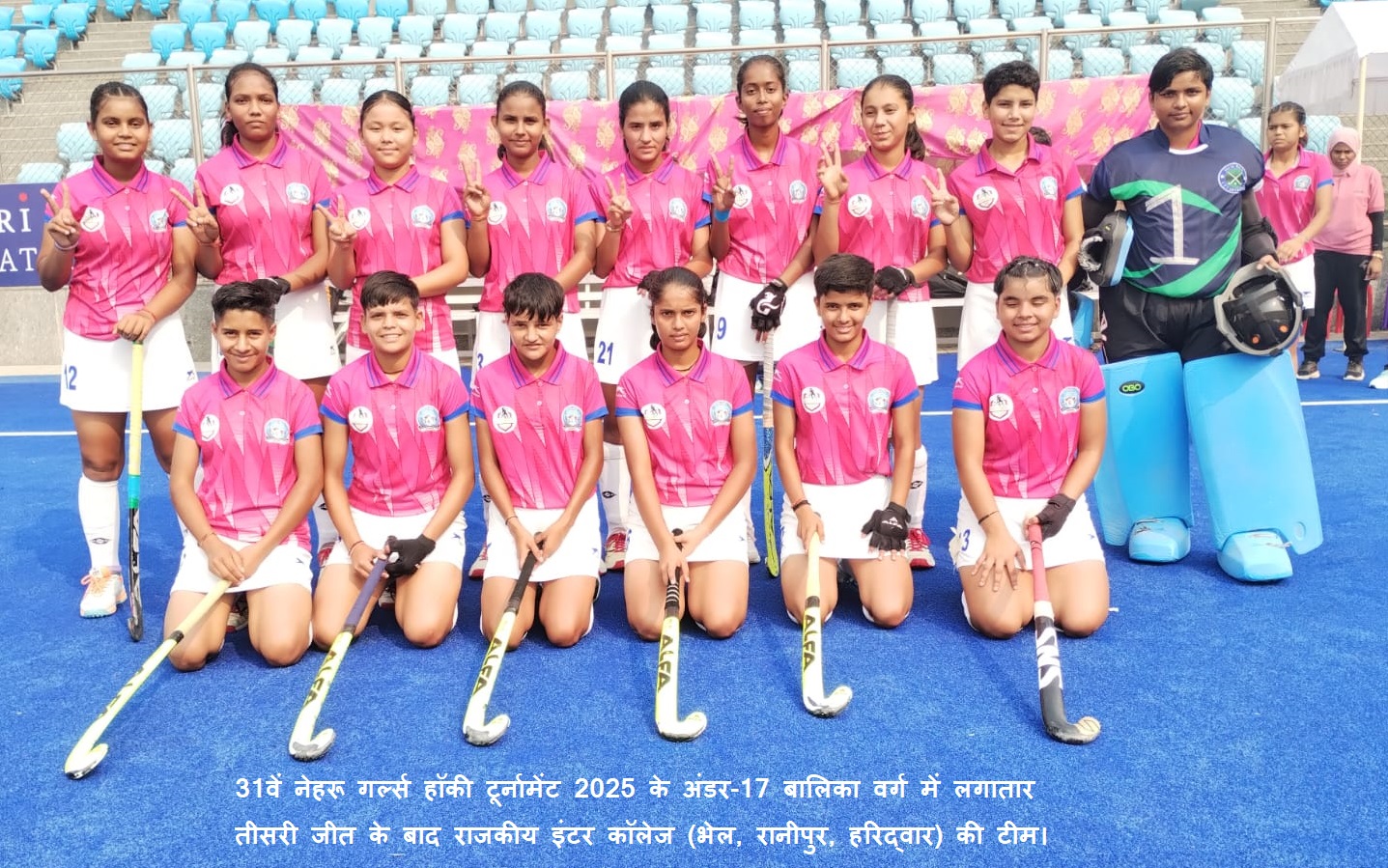 - 31वें नेहरू गर्ल्स हॉकी टूर्नामेंट के अपने तीसरे मुकाबले में राजकीय इंटर कॉलेज (भेल, रानीपुर, हरिद्वार) ने असम की स्कूल टीम को 5-1 से धो डाला