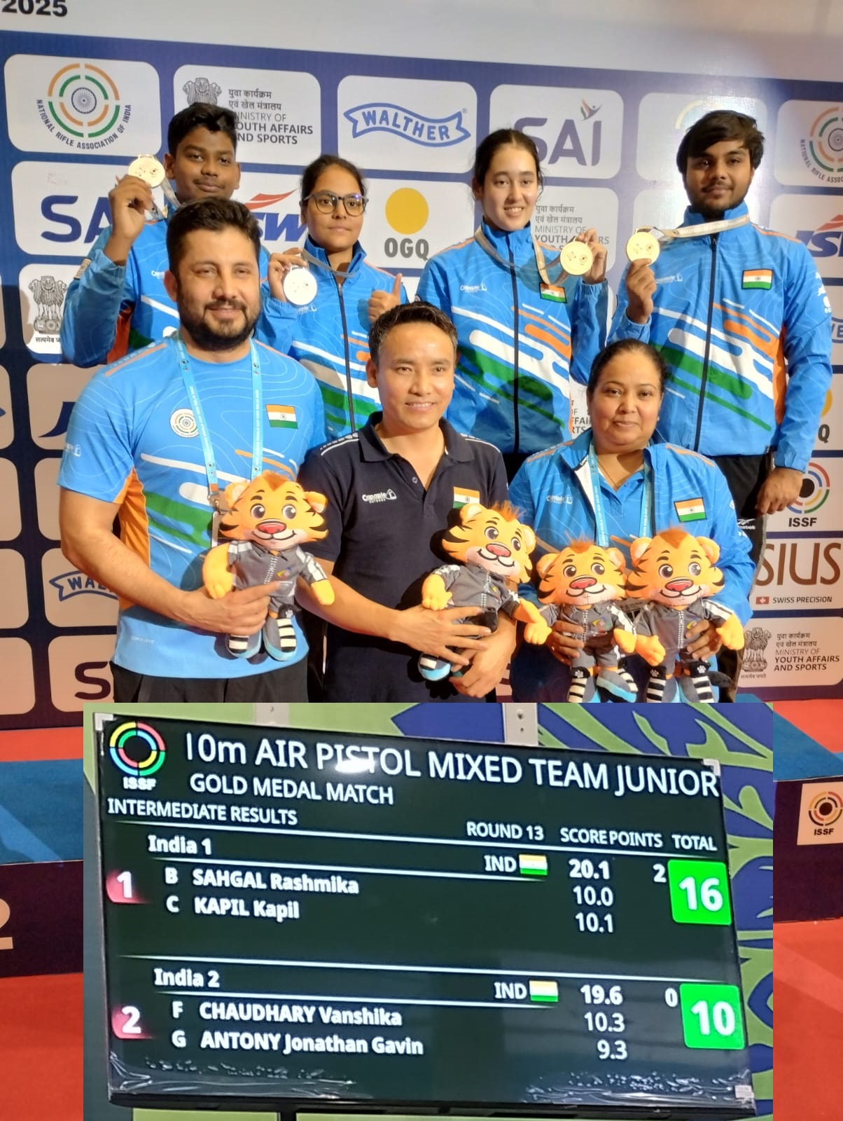 राजधानी दिल्ली स्थित डॉ. कर्णी सिंह शूटिंग रेंज में प्रतियोगिता के 10 मीटर एयर पिस्टल मिक्स्ड टीम इवेंट पर मेजबान टीमों ने स्वर्ण व रजत पदक अपने नाम किया। जब ‘ऑल इंडियन फाइनल मुकाबले’ में कपिल और रश्मिका साहगल ने हमवतन टीम गेविन एंटनी जोनाथन और वंशिका चौधरी को 16-10 से हराकर मेजबानों को प्रतियोगिता का तीसरा स्वर्ण दिलाया। इसके बाद इटली के मार्को कोको और एरियाना नेम्बर ने क्रमशः जूनियर पुरुष और महिला स्कीट फाइनल में शीर्ष स्थान हासिल किया।