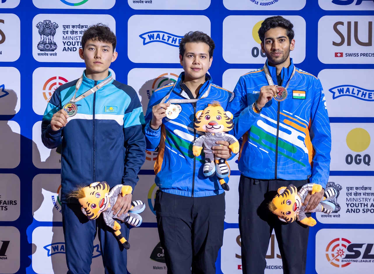 नई दिल्ली, 12 फ़रवरी 2026: राजधानी दिल्ली के डॉ. कर्णी सिंह शूटिंग रेंज में चल रही एशियन राइफल/पिस्टल चैंपियनशिप 2026 के दौरान भारतीय निशानेबाजों ने 50 मीटर राइफल थ्री पोजीशंस स्पर्धा में क्लीन स्वीप करके वाहवाही लूट ली। स्टार शूटर ऐश्वर्य प्रताप सिंह तोमर ने फाइनल में अपने अनुभव का शानदार प्रदर्शन करते हुए अंतिम शॉट में 10.7 का सटीक निशाना लगाया और टीम साथी नीरज कुमार को पछाड़कर 50 मीटर राइफल थ्री पोजीशंस स्पर्धा का स्वर्ण पदक अपने नाम किया। तीसरे भारतीय अखिल श्योराण ने कांस्य पदक जीता।