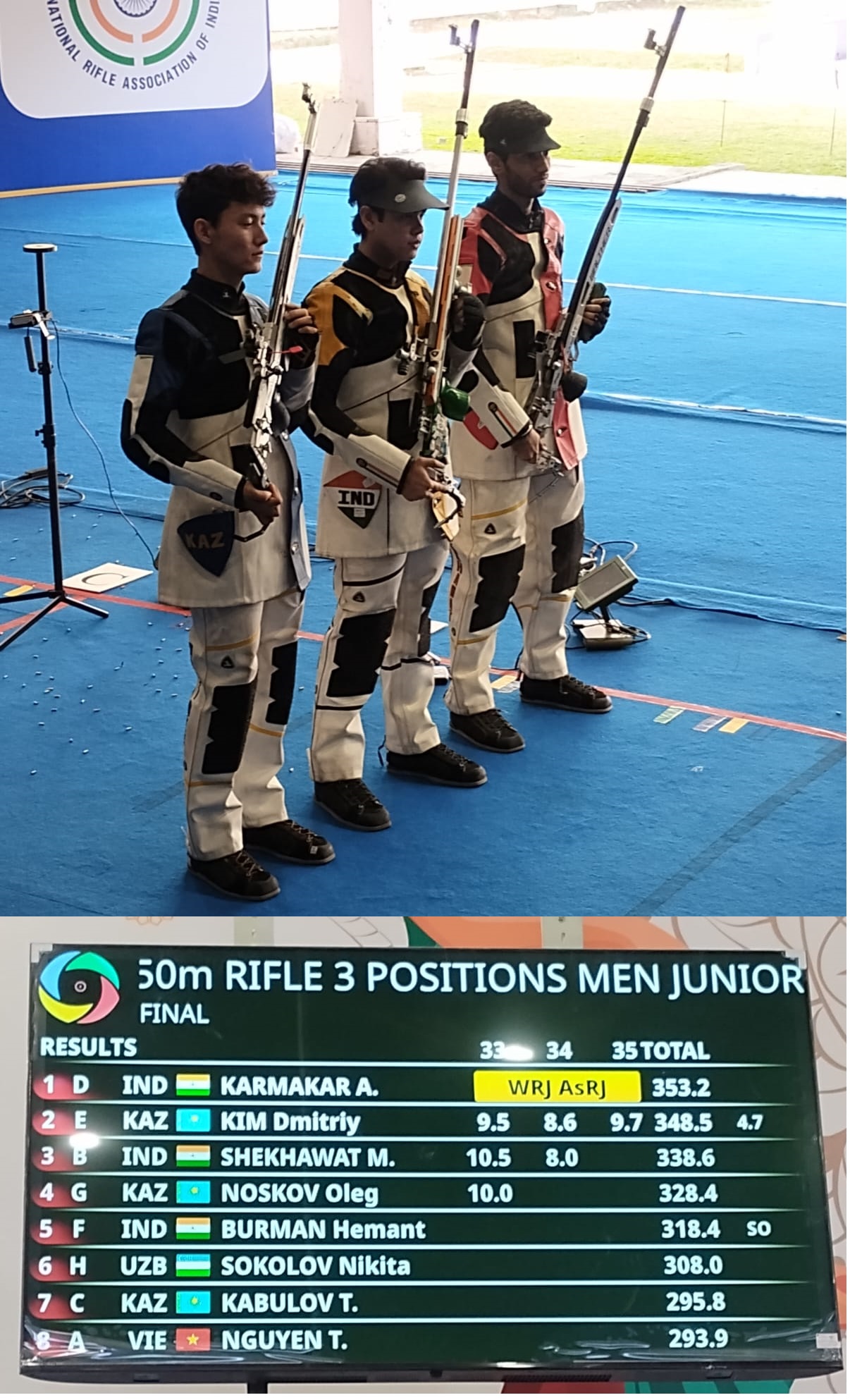 • 50 मीटर राइफल थ्री पोजीशंस में के जूनियर पुरुष वर्ग का स्वर्ण आद्रियान कर्माकर ने 353.2 के वर्ल्ड रिकॉर्ड स्कोर के साथ जीता