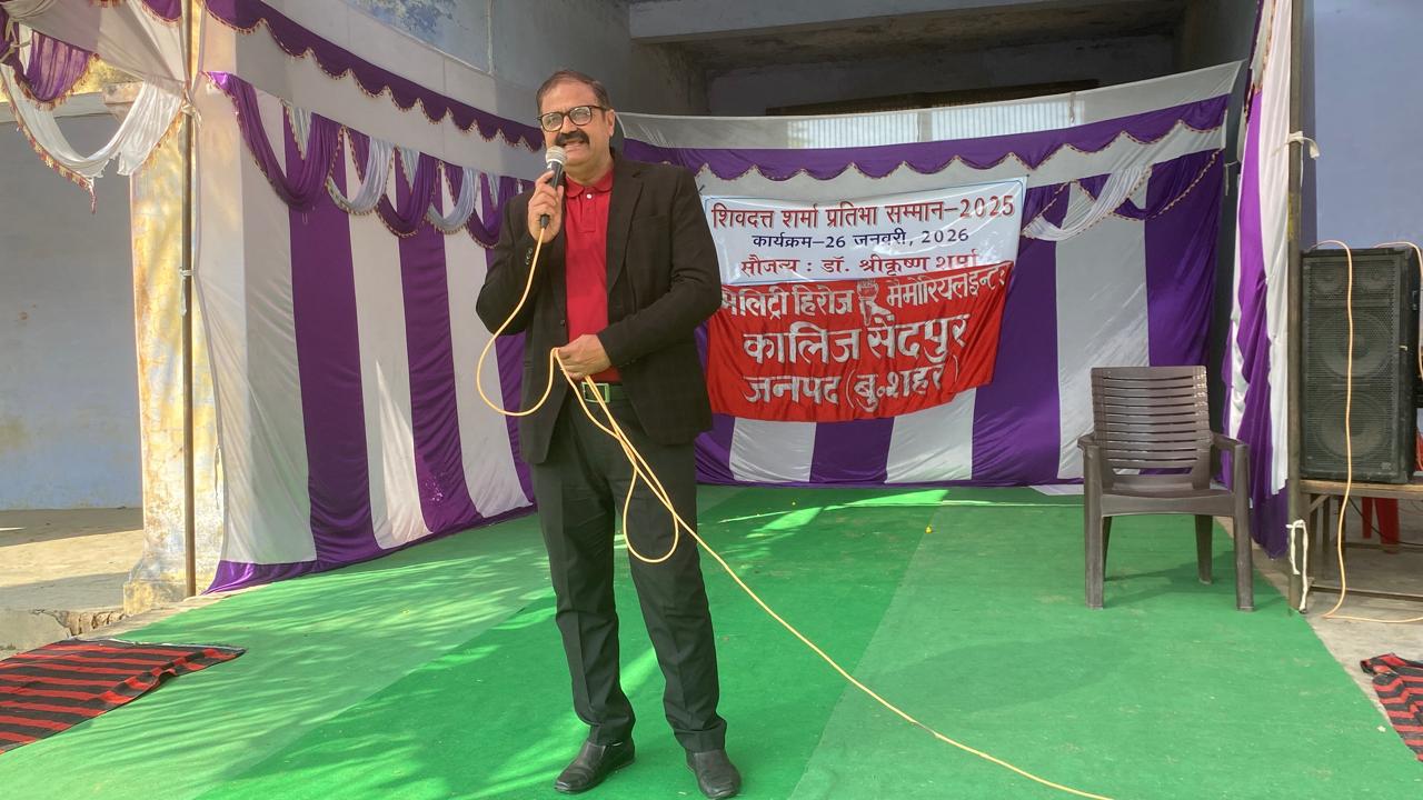 सैदपुर, बुलंदशहर, उत्तर प्रदेश। शिवदत्त शर्मा प्रतिभा सम्मान 2025, रिया शर्मा सुपुत्री श्रीमती रीता शर्मा एवं श्री नरेश शर्मा, निवसी ग्राम सैदपुर, जिला बुलंदशहर, उत्तर प्रदेश को प्रदान किया गया। उन्हें यह सम्मान शिवदत्त शर्मा सेंटर फॉर सस्टेनेबल डेवलपमेंट के कार्यकारी निदेशक डॉ.श्रीकृष्ण शर्मा द्वारा 26 जनवरी 2026 को मिलिट्री हीरोज कॉलेज सैदपुर, बुलंदशहर, उत्तर प्रदेश में आयोजित एक समारोह में देकर सम्मानित किया गया। रिया शर्मा मिलिट्री हीरोज कॉलेज सैदपुर की दसवीं की छात्रा है। जिन्होंने सम्मान वर्ष में बेहतरीन प्रतिभा को दिखाते हुए इस सम्मान को पाया है।